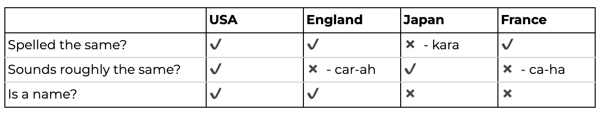 It’s not to say in Japan or France people don’t know that Cara is my name…it’s more that it’s immediately identifiable as not Japanese or French. As someone who is clearly foreign and is married to a fellow foreigner, it doesn’t bother me that we don’t have names that are passable in multiple languages. But if you’re a mixed-culture family, having a name that works in both languages creates a sense of belonging in both cultures. For kids who are already inherently different from their monocultural peers, this sense of belonging through a name can help bridge differences.