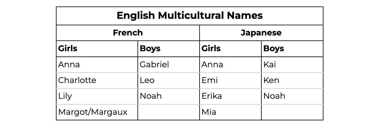 So basically if you’re a French/American/Japanese couple, you can have two children and they will be named Noah and Anna.